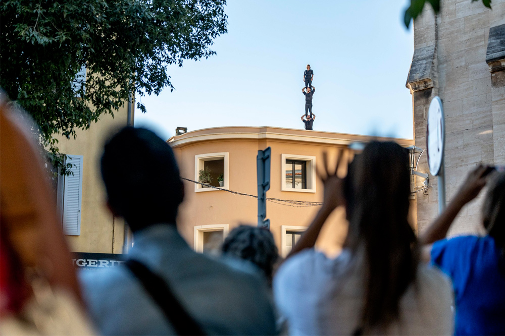 Elles et ils ont ainsi organisé un parcours qui s’est déroulé du 9 au 14 septembre. Chaque jour, les 18 acrobates du collectif allaient à la rencontre des habitant·es, des passant·es – de manière impromptue – proposant à celles et ceux qui croisaient leur chemin, un instant hors du temps, une brèche poétique.