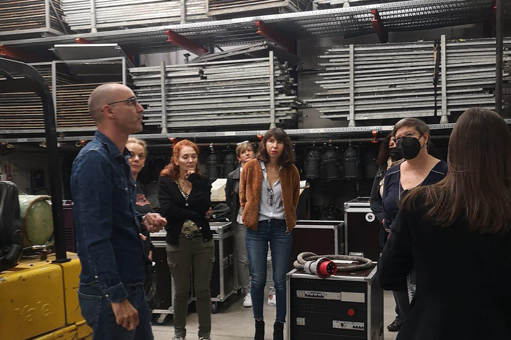 Dès l’arrivée des enseignants et enseignantes, Olivier Boudon, le régisseur général de Châteauvallon leur a fait visiter le théâtre, le local décor ainsi que les bâtiments.