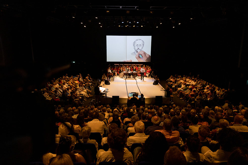 Quel roman que sa vie ! Léon Blum : dandy lettré, poète à ses heures, dreyfusard engagé, Président du Conseil, promoteur de mesures sociales toujours mythiques, jugé par les magistrats de Pétain, déporté à Buchenwald par les nazis, à nouveau chef du gouvernement… En adaptant à la scène le podcast de France Inter consacré à Léon Blum, Charles Berling et Philippe Collin ne rendent pas seulement hommage à un homme et à un destin hors du commun. Ils mettent aussi en résonance les espoirs d’hier et les frustrations d’aujourd’hui, les possibilités du politique et ses impuissances. Accompagné d’un dessinateur, d’un historien, d’une chorale et de comédiens amateurs du territoire toulonnais, cet évènement théâtral participatif fait souffler un vent d’optimisme. On dansera sous les lampions et on mangera sous les pins dans un grand banquet républicain.