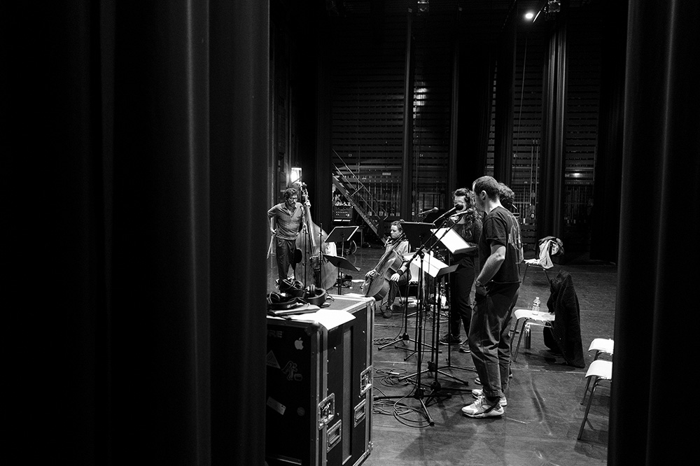 S. G. — Lors de cette lecture, nous serons quatre diseur·ses au plateau, accompagné·es de deux instrumentistes. Textes en main, nous les lirons au son du violon, de la contrebasse et de percussions. Dans une rhapsodie de paroles, nous mélangerons tous types de propos pour rendre compte de l’instant présent.