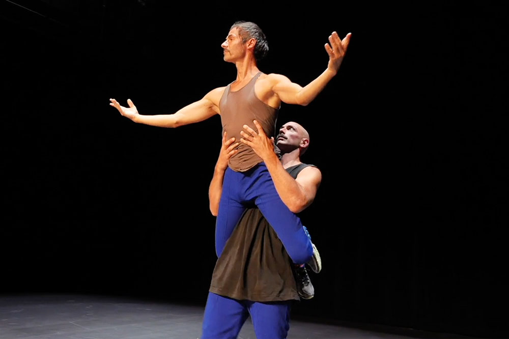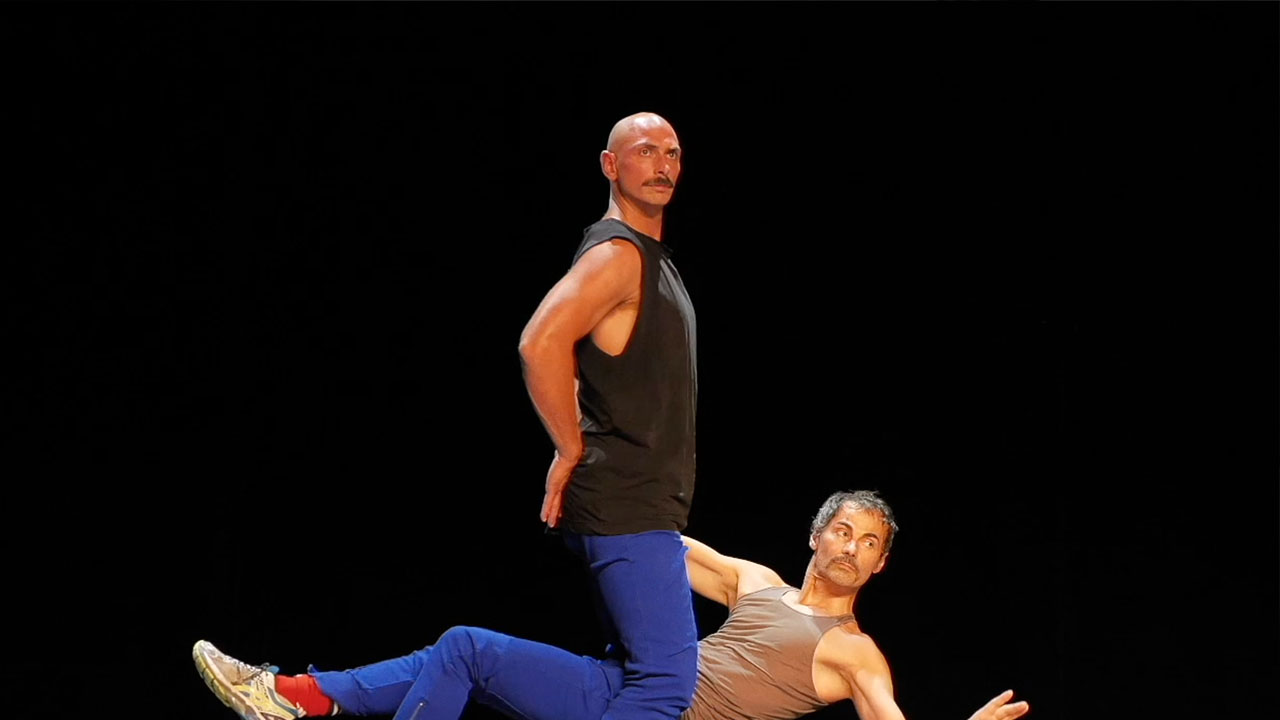DOS nous plonge dans la marche de deux hommes aux corps dissonants. Dans un ring d’observation, l’attraction physique se transforme en combinaisons décalées. Comme au catch, les mouvements calculés entremêlent les poses et les prises ; une danse de mains, de bras, de poitrines, de dos et de jambes qui se lovent, s’entassent et se repoussent. À la fois sensuel et maladroit, puissant et fragile, le pas de deux physique mené par ce duo dépareillé écrit une poésie du corps immédiate. Ce qui importe n’est pas ce que l’on croit, mais ce que l’on voit.