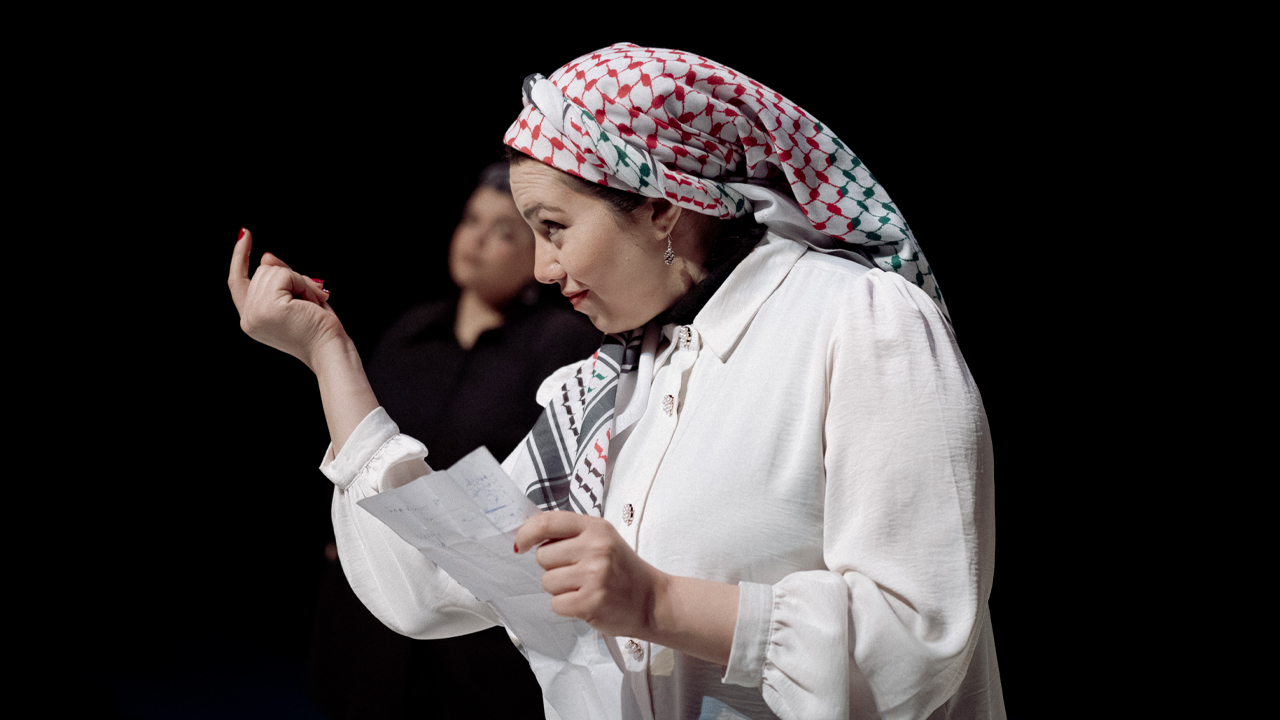 Dans ce sublime oratorio en langue arabe, surtitré en français, Hend Jouda, palestinienne de Gaza, fait résonner de sa voix le désormais célèbre poème « Que signifie être poète en temps de guerre ? ».