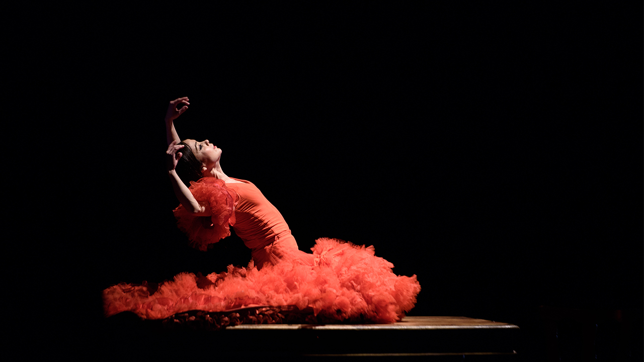 Olga Pericet mêle le classique espagnol et le flamenco, robe par-dessus tête. Tantôt fleur dans ses tutus et volants, tantôt revêtant l’habit de lumière, la danseuse invite à un voyage personnel où l’onirique côtoie le quotidien, comme cette séance d’ouverture dédiée à la chaussure.