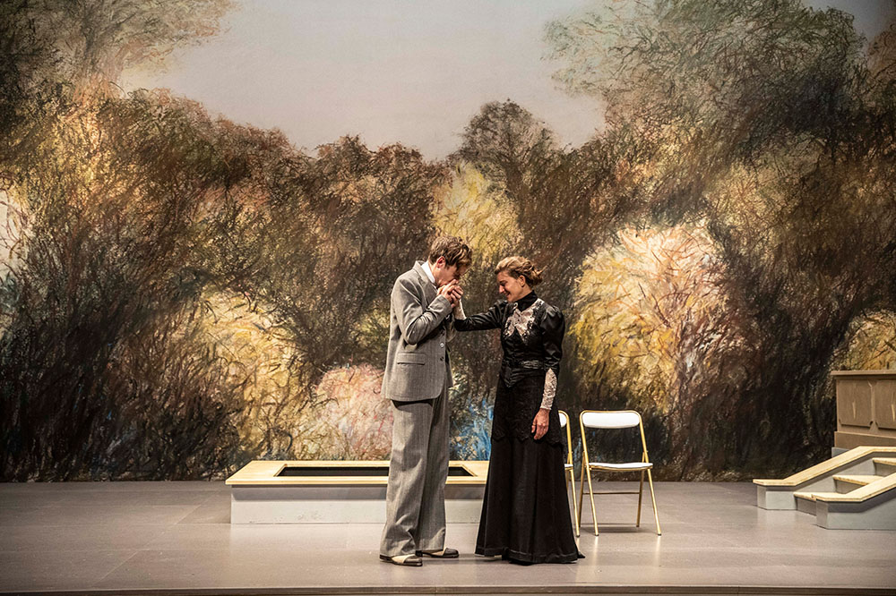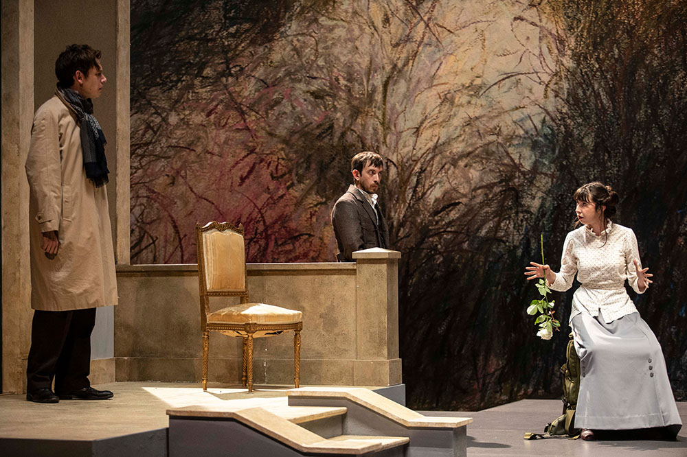 Marivaux fait des expériences avec des êtres humains. Et pour cela il les place sur le théâtre de manière symétrique, comme s’il dessinait un jardin à la française. Une Marquise et un Chevalier sont tous deux totalement imperméables à l’amour. C’est terminé pour eux, ils ont beaucoup aimé (c’était leur première « surprise ») et la perte de leur amour les a rendus insensibles, fermés. Et pourtant… une seconde surprise advient. Parler est la seule issue à leur enfermement, tout ce qui se dit sans se dire vraiment, tout ce qui est implicite, tout ce qui se dit malgré eux de leurs désirs. Alain Françon excelle dans ce ballet de sentiments contrariés et inavoués où les mots jouent, dansent et amusent en révélant le fond des âmes. La scénographie de Jacques Gabel offre un cadre bucolique ouvert sur une forêt, chaos naturel qui borde la civilité d’un théâtre de l’humanité que l’amour conduit. Qu’elle le veuille ou non.