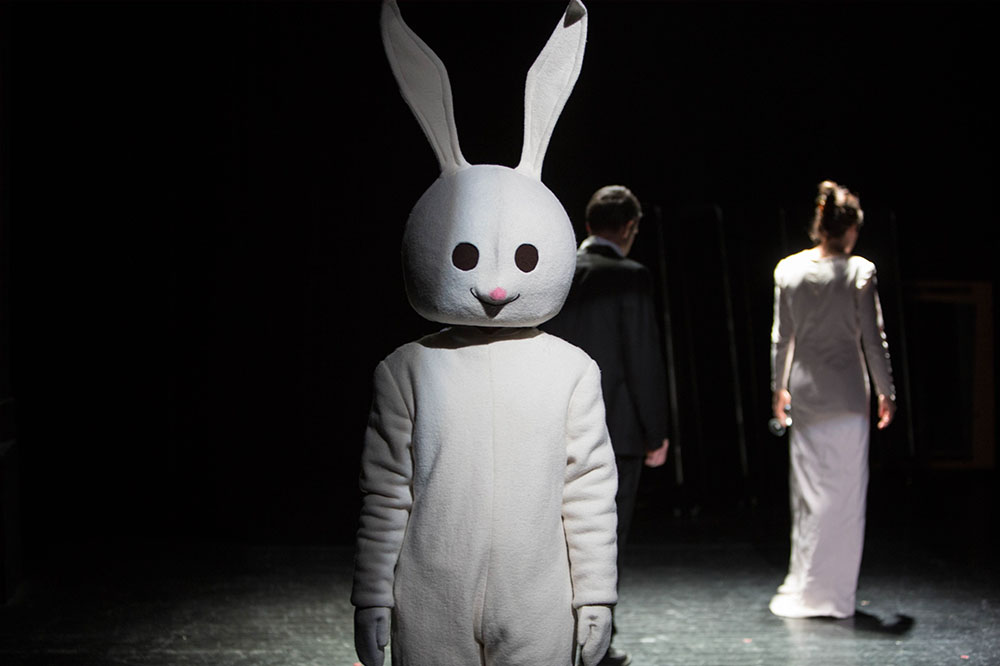 Véritable déclaration d’amour au métier de comédien, la pièce Les Inassouvis est une perle précieuse qu’il convient de se mettre sous les yeux pour en apprécier tous les contours. De rêves en réalités brutales, la bande du Cabinet de curiosités (Stéphane Bault, Marie Blondel, Guillaume Cantillon et Alexandre Dufour) révèlent les espoirs, les envies, les désillusions, les « on aimerait y croire », d’une profession mise à mal par le diktat du bankable. L’acte théâtral et tout ce qui l’entoure n’a jamais été aussi bien représenté qu’avec Les Inassouvis. Peut-être parce que les comédiens touchent à leur intime conviction d’être, celle d’être les artisans d’une profession à défendre. Les tableaux composent les feuilles d’un carnet de notes qui montreraient les multiples aspects du monde du théâtre. C’est drôle, grinçant, acide, mais avec toujours cette once de vérité qui rappelle la fragilité du comédien, mais de l’acte théâtral lui-même. Tout est fait en direct au plateau, de la conduite lumière au lancement des musiques. Tout est à vue. Alors, regardons tout cela !