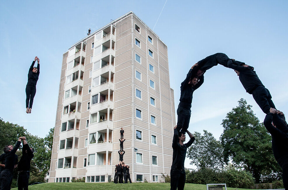 Depuis plus de 20 ans, le collectif XY interroge le langage acrobatique à travers la pratique des portés. Tout en s’appuyant sur les fondamentaux de cette technique circassienne, les artistes du collectif jouent avec les codes, les rythmes et les formes de l’acrobatie.