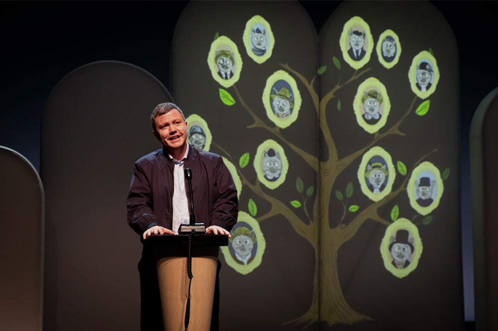Donner des clés de compréhension. Quelle que soit la forme artistique adoptée, Océan se veut pédagogue. Il le prouve une fois de plus dans ce solo. Dans la première partie, il nous emmène dans l’histoire des sexes et des genres. Mêlant faits historiques et anecdotes, il décrit avec humour son apprentissage de la binarité dès l’enfance à son travail de déconstruction.