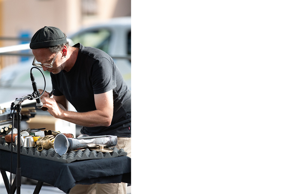 Contrebassiste de formation, Éric Brochard ne cesse de rechercher et développer un son en privilégiant l’écriture (automatique) du geste, les rythmes versatiles, les parties mélodiques griffées par des accidents de parcours…, Il confère à chacune de ses représentations un caractère cérémonieux et aléatoire en inventant une musique organique, en perpétuel mouvement. Eric partage aujourd’hui son travail à la contrebasse avec des recherches sur effets électroniques qu’il met au point pour créer des espaces sonores autour de drones et avec le logiciel Max/Msp.