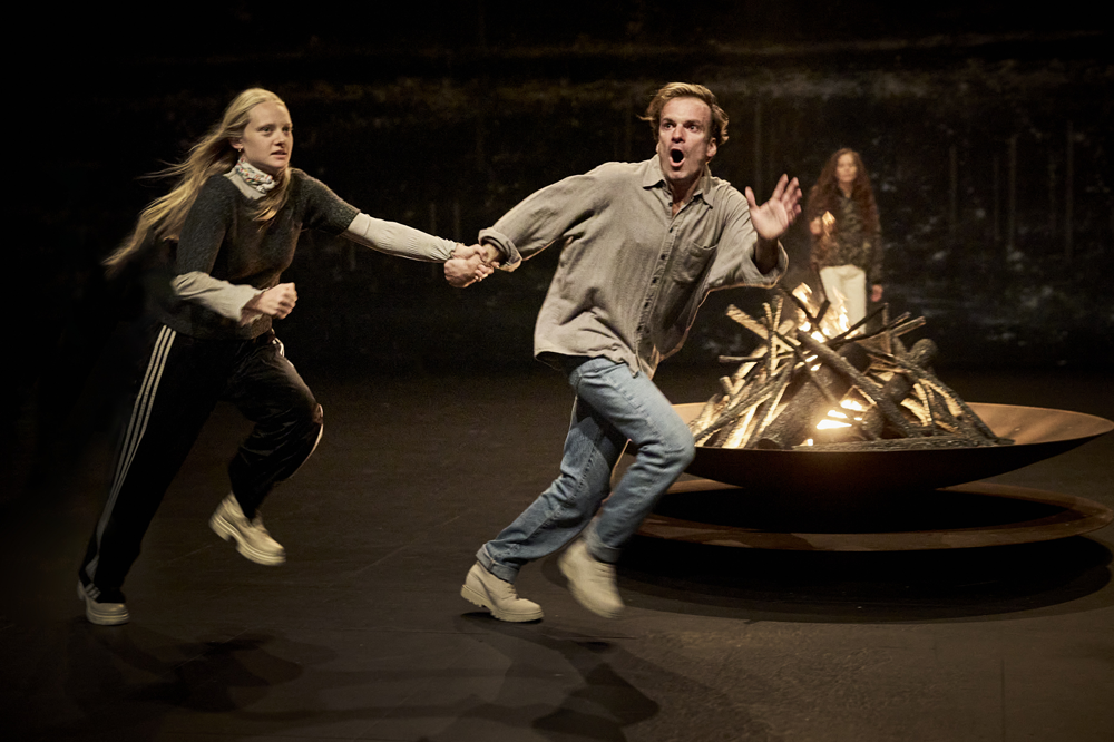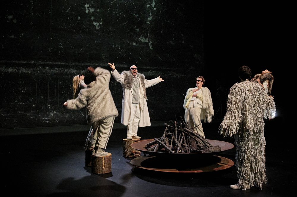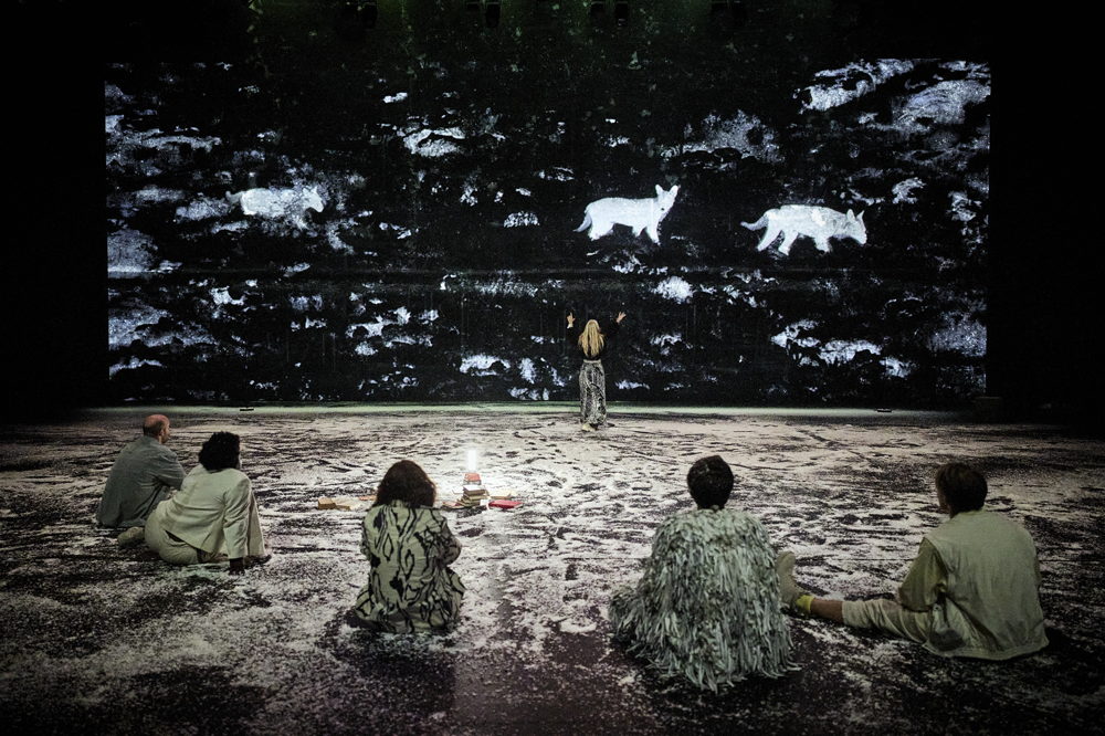 « Rencontre : aller vers l’autre pour mieux revenir à soi, transformé. Cet enjeu est également au cœur de l’intrigue du spectacle. Que se passe-t-il quand six philosophes sortent au grand air suivre la trace des loups ? Ils redessinent les contours du monde et de leur humanité. » Libération