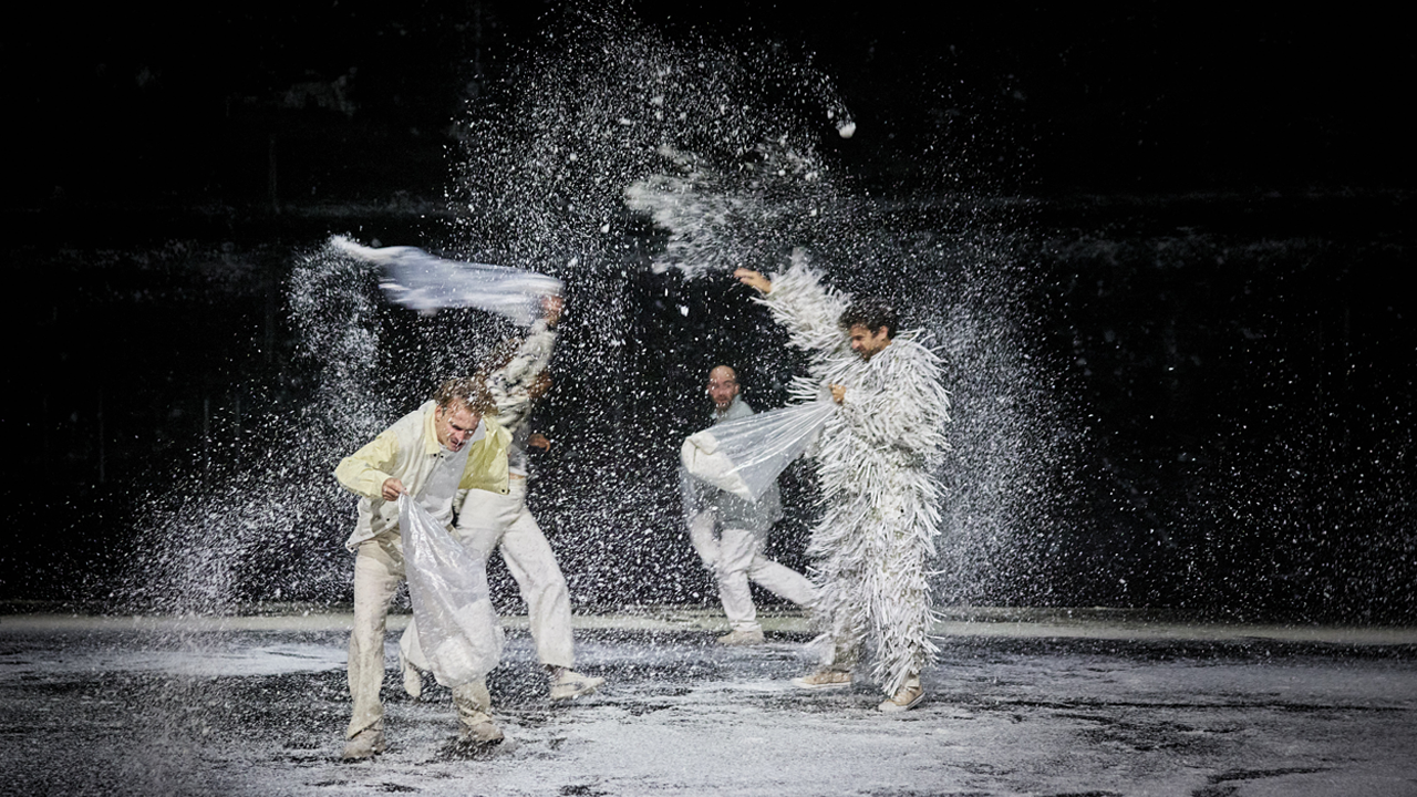Dans le Vercors, un groupe de randonneur·euses scrute les oiseaux en route pour l’Afrique. Elles et ils comptent les hirondelles, les passereaux, les mésanges en s’émerveillant de leur beauté avant de partir sur les traces de l’habitant le plus légendaire des montagnes : le loup. Une fois la nuit tombée, un hurlement se fait entendre. L’animal cherche-t-il à entrer en contact ? Avec pour seul décor la nature, six interprètes mènent l’enquête. En tant qu’Humain, comment peut-on explorer l’environnement qu’habite le loup ? Comment s’adapter à ce monde sauvage ? Comment tisser une relation avec cet être vivant ? Alternant actions et réflexions, les comédiennes et les comédiens transforment progressivement la scène en un vaste terrain philosophique. Toutes et tous nous emportent dans un tourbillon d’idées, dans une cascade de métaphores qui redéfinissent ce que « vivre » veut dire.