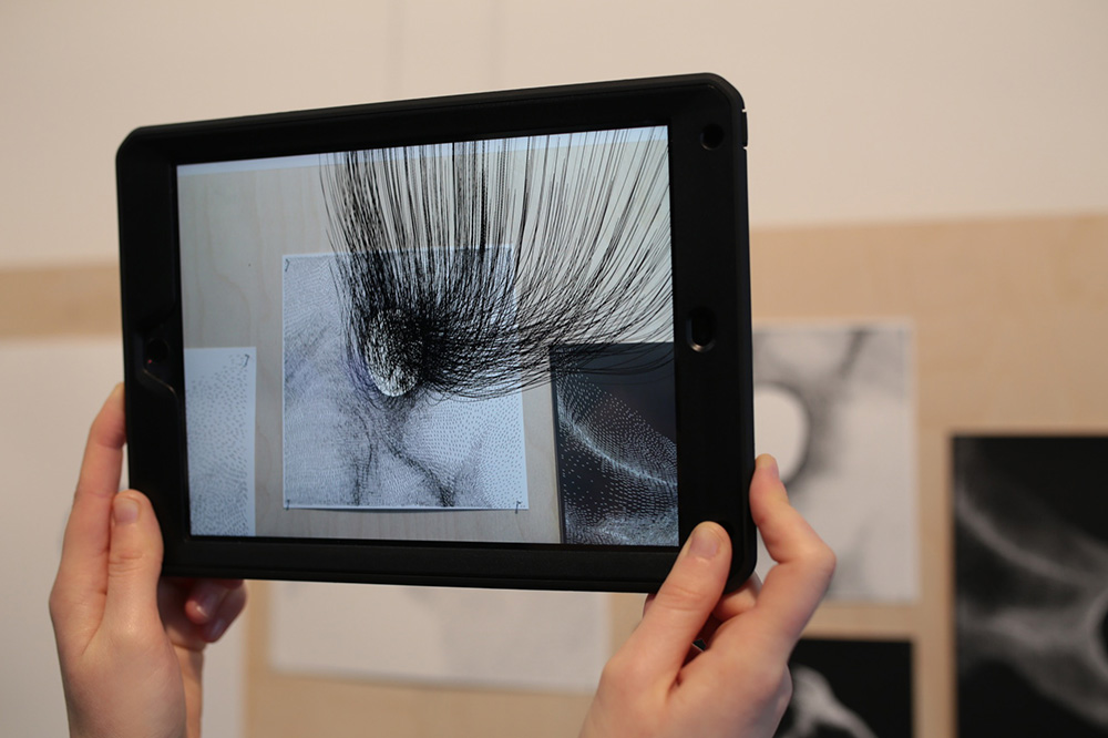 L’image en réalité augmentée, immatérielle, mobile, agile, vient incarner un imaginaire et ouvrir ces objets à réaction poétique. Les tablettes jouent le rôle de fenêtres vers cette réalité cachée.