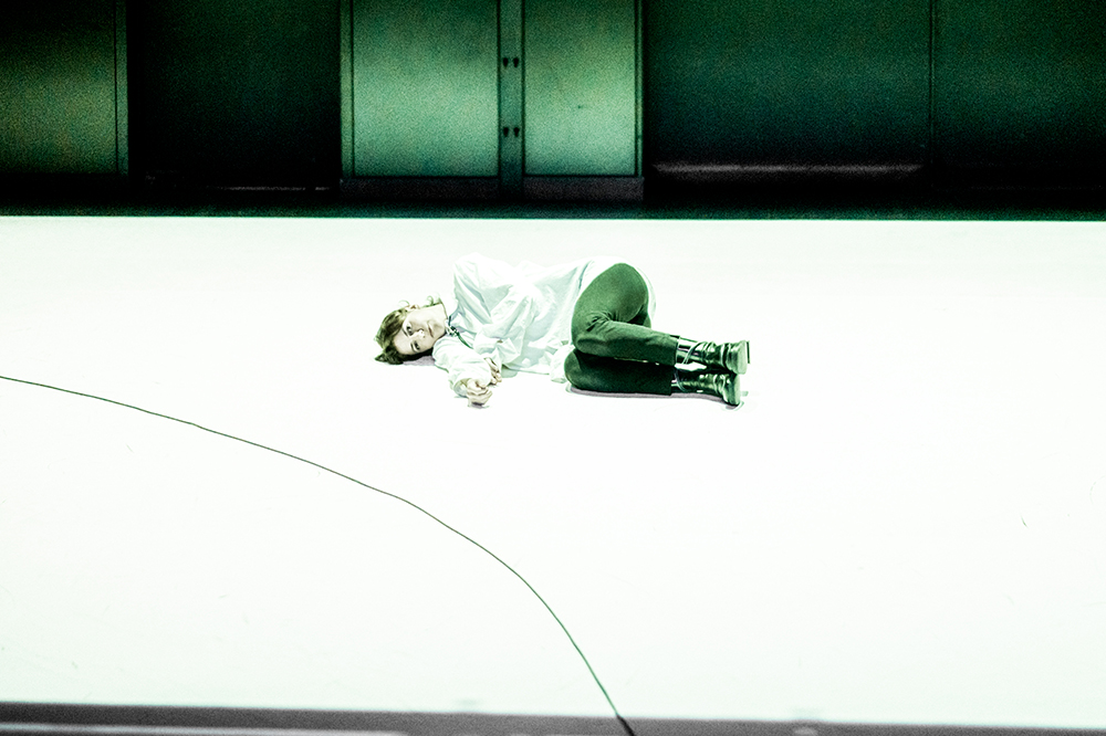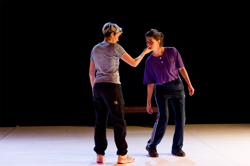 Au plateau, textes et chorégraphies suggèrent plusieurs temporalités. Sur une création sonore composée en direct par Thibault Lamy, l’artiste déploie une partition faite de boucles, de répétitions, de motifs d’entraînement. Son corps en mouvement « apprend », dit « oui ». Mais quelles seront les limites de ce jeu ?