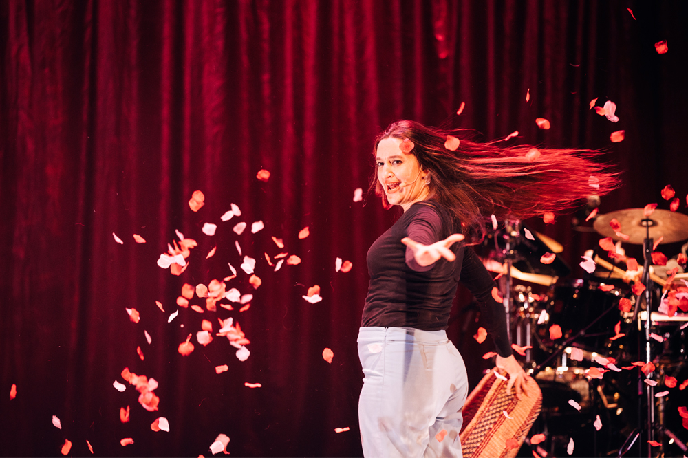 De sa voix rocailleuse, elle revient sur toutes les premières fois : les règles, le corps qui se transforme, la sexualité, les virées nocturnes, le planning familial… Elle chante ces moments-clés comme des épopées puissantes. Elle danse merveilleusement la fatalité. Et nous incite, par sa présence lumineuse, à croquer la vie.