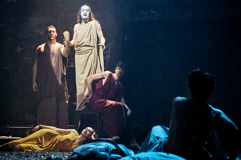Au plateau, quatorze jeunes talents incarnent les membres de la lignée des Atrides qui ne font jamais dans la dentelle. Œil pour œil, dent pour dent, tous les coups sont permis. Pour cette troupe, la mythologie grecque est une matière inépuisable, essentielle. Dans un rare plaisir de jeu, Jean-François Sivadier et les comédien·nes font de cette épopée un grand moment de théâtre tragi-comique.