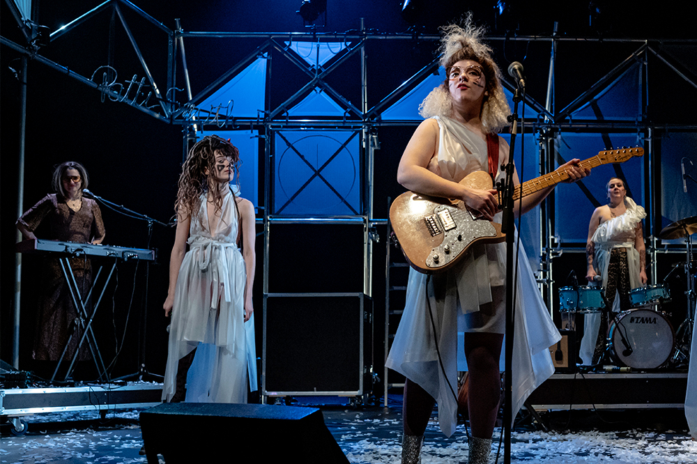 Dans cette explosion de corps, de musique et de couleurs, on retrouve aussi le goût de la metteuse en scène pour l’enchantement et la fable, les confettis qui emportent le réel du côté de la fiction, cette envie de grandir la vie, de rendre grâce à ses intensités phénoménales. De l’histoire de ces quatre filles coiffées avec un pétard, qui se cognent à la vie, au machisme et aux abus, de ces quatre jeunes femmes puissantes et fragiles à la fois, ces aventurières qui n’ont pas eu froid aux yeux, Justine Heynemann et Rachel Arditi en tirent une épopée scénique réjouissante et galvanisante qui reconnecte avec la faculté d’agir coûte que coûte quand le désir est là. Marie Plantin, Sceneweb