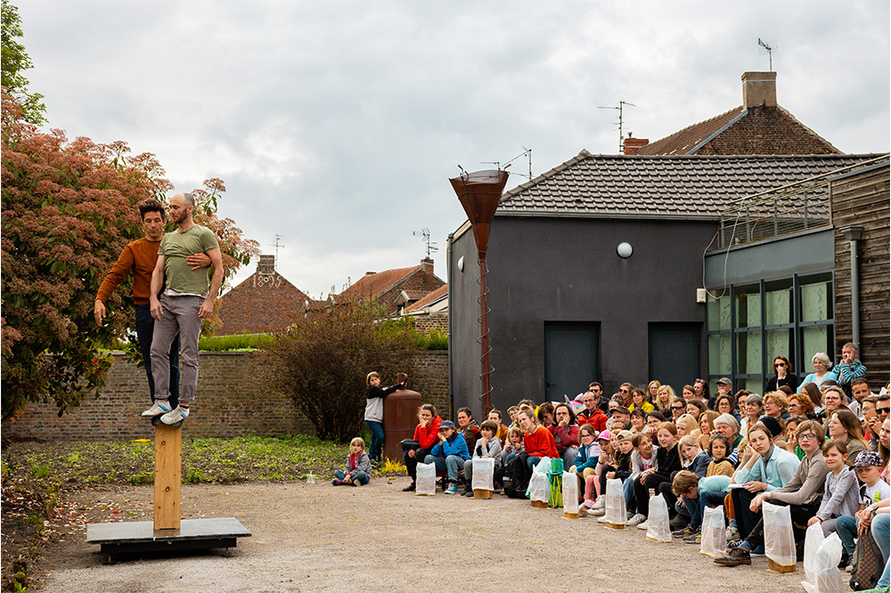 Deux hommes en équilibre s’agrippant l’un à l’autre pour ne pas vaciller, une preneuse de son, vingt radios réparties dans le public, et des spectateurs qui retiennent leur souffle. Avec Rapprochons-nous, la compagnie circassienne La Mondiale générale réussit un coup de maître : celui de transformer chacune de ses représentations en un moment unique.