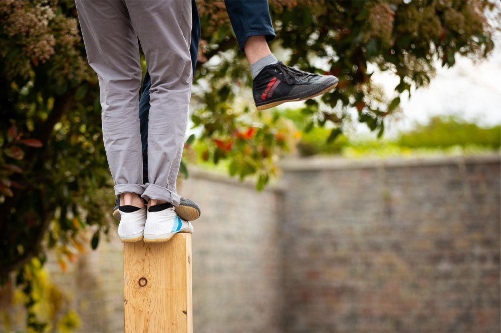 Perchés sur une poutre en bois trop petite pour eux, deux équilibristes se chuchotent mille choses, sur la vie, sur l’avenir, sur des conseils de cuisine. Au fil de leur discussion, la tension se fait de plus en plus sentir, quand surgit une preneuse de son.
