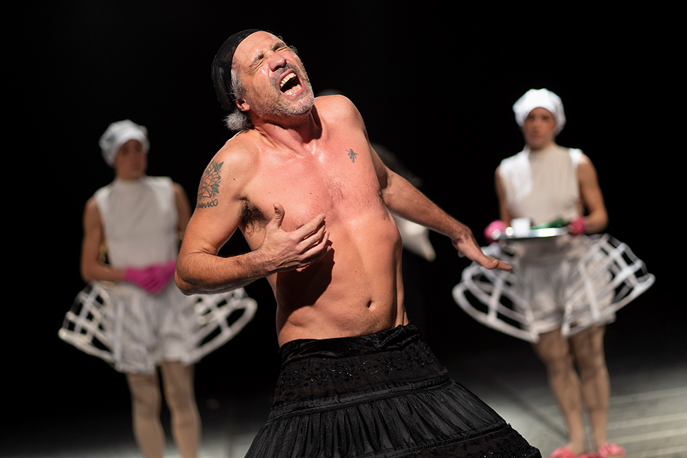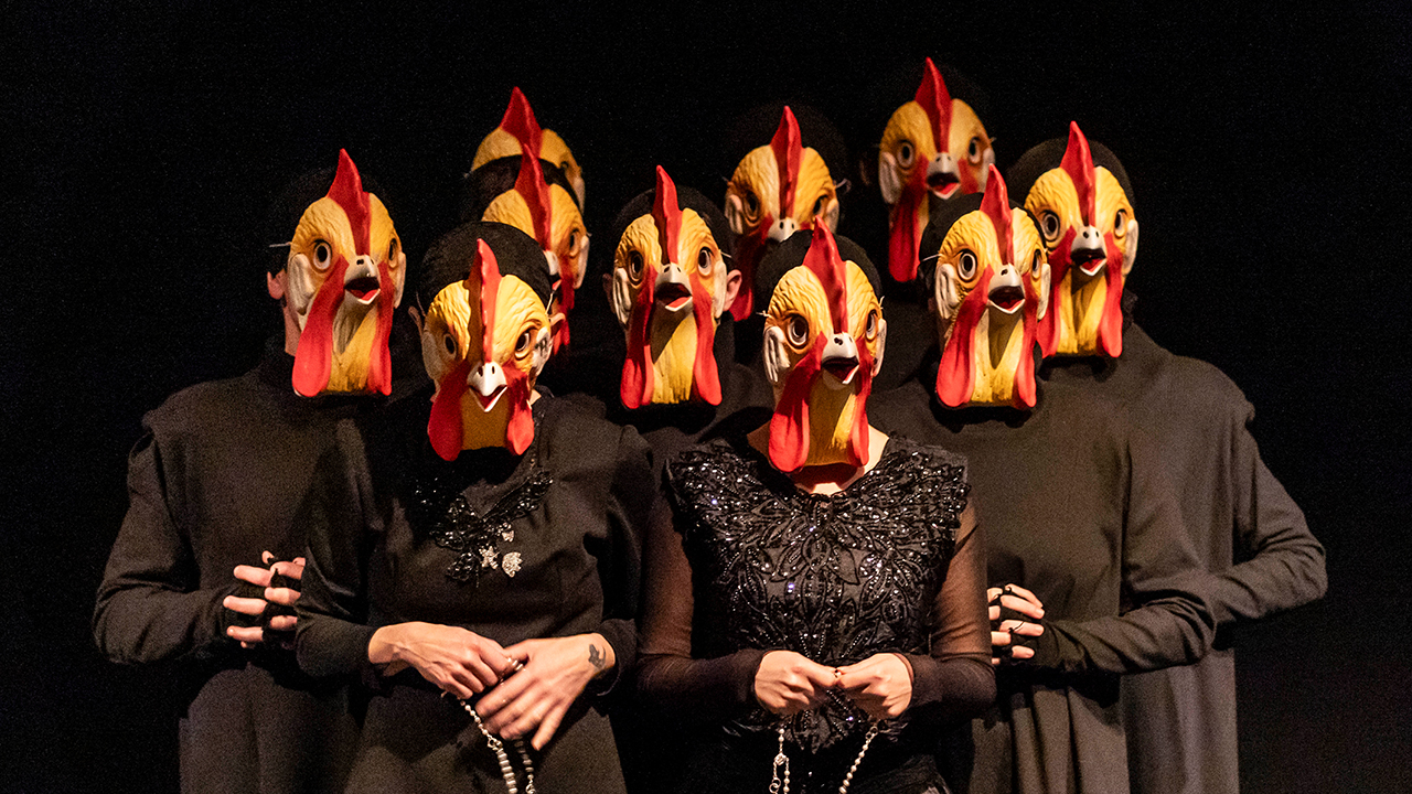 Il était une fois un roi qui, partant à la chasse, s’en fut se soulager derrière un buisson. Il s’essuya avec une poule aux plumes douces, soyeuses et blanches, qui gisait abandonnée dans un coin. Mais la poule n’était pas morte et décida de s’installer dans le cul du roi ! C’est ainsi que commence cette nouvelle création d’Emma Dante. Après La Scortecata (2018) et Pupo di zucchero (2021), elle s’inspire à nouveau de ces contes italiens du XVIe siècle qui rivalisent avec ceux de Perrault et de Grimm. Une fois encore, l’humour, la poésie et la magie opèrent !