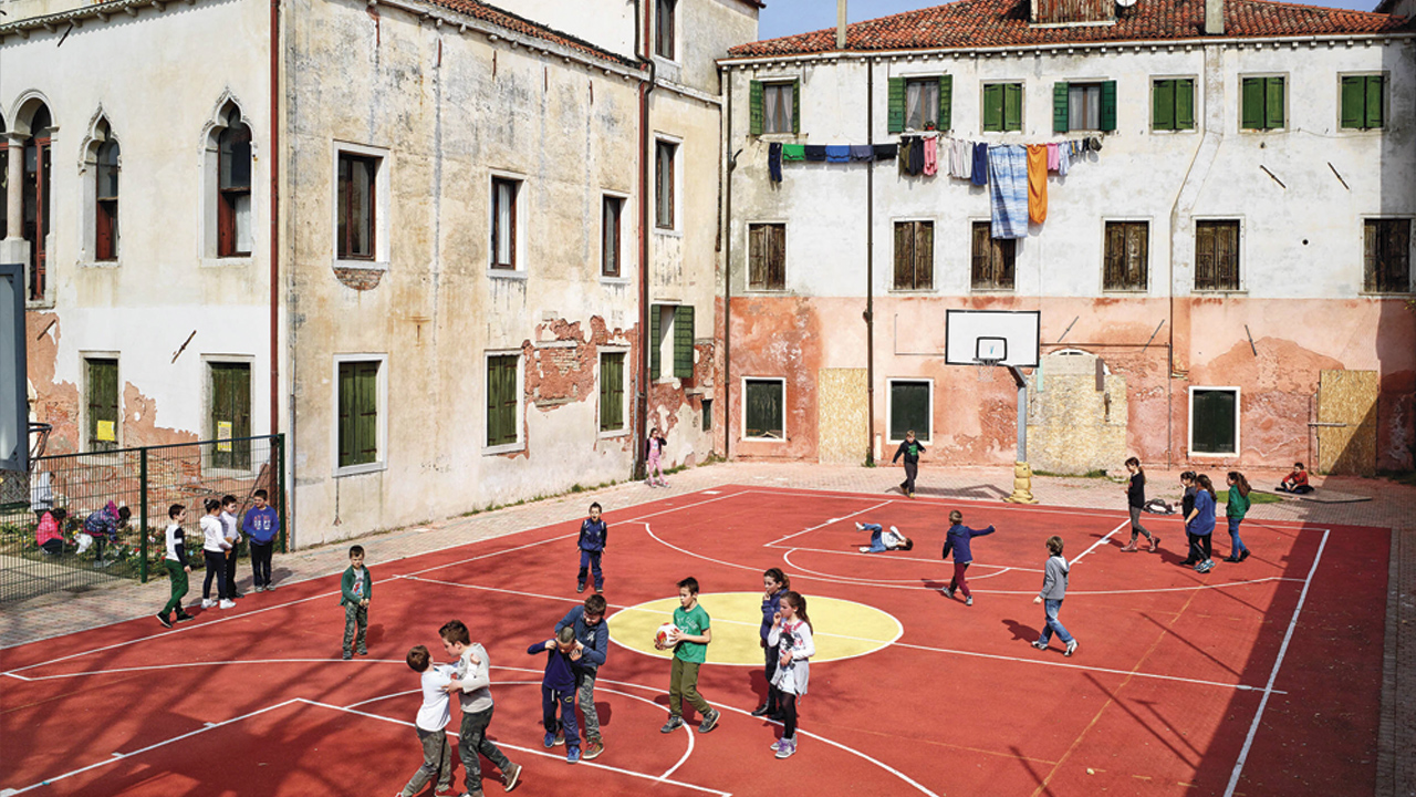 Les photographies de cours de récréation prises par James Mollison aux quatre coins du monde ont quelque chose de fascinant. On ne se lasse pas de les regarder, de les scruter, ressentant en une même émotion paradoxale leur familiarité et leur étrangeté. L’œil se focalise sur la légende pour comprendre où se passe la scène : Gaza, Norvège, Sierra Leone, Grande-Bretagne, Bouthan, Italie, Russie… Si toutes montrent l’effervescence et le plaisir du jeu, elles soulignent également de grandes disparités.