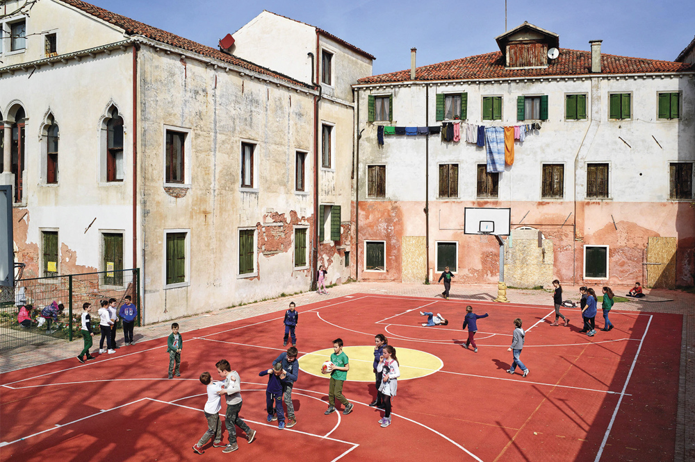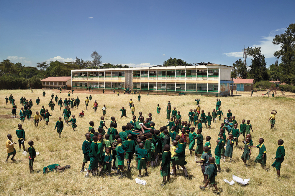 Les photographies de cours de récréation prises par James Mollison aux quatre coins du monde ont quelque chose de fascinant. On ne se lasse pas de les regarder, de les scruter, ressentant en une même émotion paradoxale leur familiarité et leur étrangeté. L’œil se focalise sur la légende pour comprendre où se passe la scène : Gaza, Norvège, Sierra Leone, Grande-Bretagne, Bouthan, Italie, Russie… Si toutes montrent l’effervescence et le plaisir du jeu, elles soulignent également de grandes disparités.