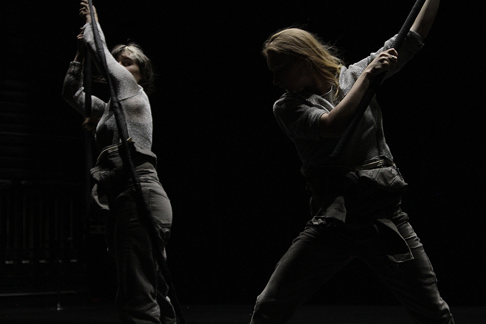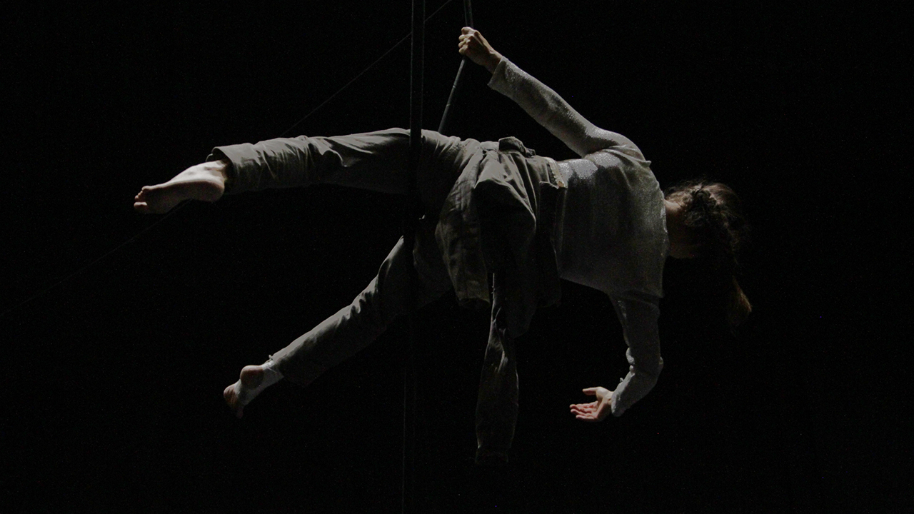 Sébastien Ly crée un dialogue constant entre le corps en mouvement et l’espace dans lequel il se déploie. Pour cette pièce en suspension, il s’est appuyé sur l’artiste Kitsou Dubois, passionnée depuis des années par le phénomène d’apesanteur. Sur scène, ou plutôt devrait-on dire dans les airs, deux interprètes, issues du monde du cirque, dansent sur un trapèze quand soudain ce support flanche. Accrochées à des cordes, elles vont virevolter et tenter de rejoindre la terre ferme au son d’une musique live. Eux-mêmes situés sur une plateforme en hauteur, les musiciens continueront de jouer coûte que coûte, plongeant ainsi le public dans un spectacle immersif.