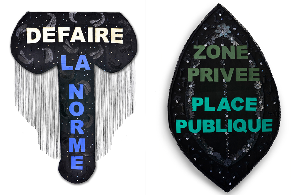 Conçue spécialement pour le 3ème Marche des Fiertés à Toulon, ZAD prend initialement la forme d’une zone délimitée dans l’espace public. Ponctuée de bannières avec des incitations visuelles et textuelles liées aux orientations sexuelles et aux identités de genre, l’œuvre est propice aux débats. La ZAD a été conçue comme un espace convivial et accueillant, composé de tapis – une agora éphémère – sur lesquels le.s participant.e.s ont pu s’installer pour débattre durant la journée du 24 septembre 2022 et à l’issue de laquelle, chaque bannière a été portée lors de la Marche des Fiertés. Pour Le Liberté, le duo d’artistes décide de rejouer la ZAD en parcours fragmenté. En déambulant dans le hall du théâtre, les spectateur.trice.s peuvent s’arrêter sur chaque forme. Le 3 décembre, la ZAD retrouvera sa forme initiale lors de la rencontre performance de Frédéric Nauczyciel, Lisa Revlon, Matyouz Ladurée, Missy da Kunt et et Dale Blackheart sur la scène de la salle Albert Camus.