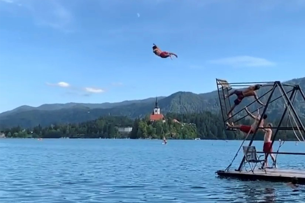 Un engin de propulsion d’un nouveau genre installé au bord de la mer permet des acrobaties à plus de 7 mètres de haut… avant le plongeon dans la Grande Bleue : spectaculaire !