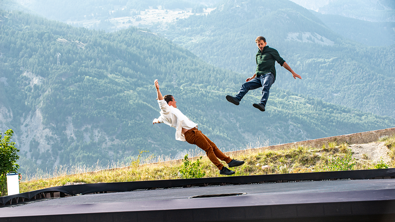 Après Entre deux mondes, programmé cette saison au Liberté, le circassien Damien Droin continue d’explorer les ressources de l’immense toile de trampoline qu’il a lui-même conçue et nommée l’Acronet. À bord de ce « vaisseau des possibles », Mohamed Nahhas et lui embarquent le spectateur dans une traversée des apparences défiant les lois de la pesanteur.