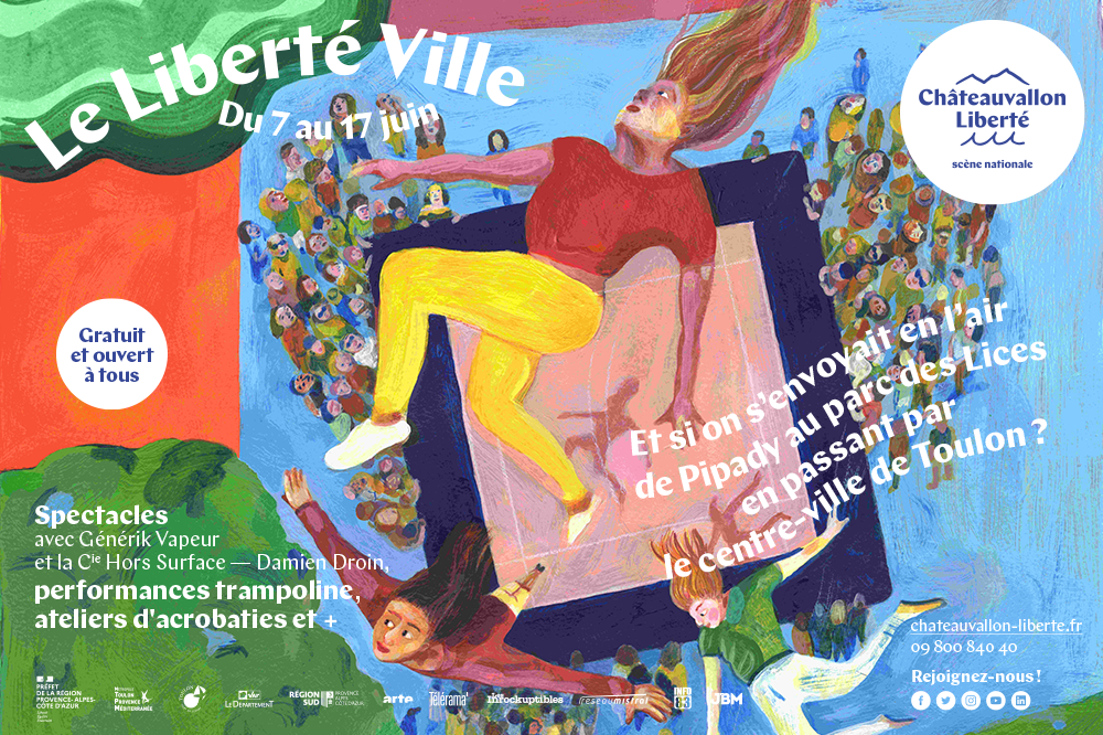 Une carte blanche a été confiée à l’artiste de cirque toulonnais Damien Droin. Avec Trampo-ville, les trampolines, fils et autres balançoires prennent possession de l’espace public. Du 7 au 10 juin, des ateliers sont proposés à 17h et des spectacles et performances à 19h.